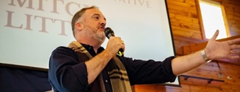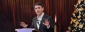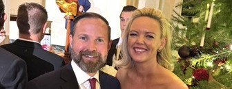 | Texas Speaker Dustin Burrows with wife Elisabeth at White House Christmas party December 13 as president speaks in background |