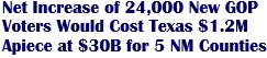 Number that's floating around at Capitol is nearly three times the size of New Mexico's entire state budget and all but impossible to believe for proposal inspired by empathy for folks who are blue in blue state and tiny R voter bump that's drop in bucket here. more
