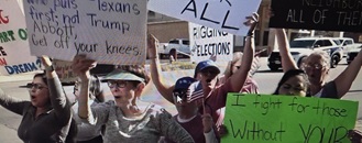 Protesters march in Tyler outside Greg Abbott event on November 12